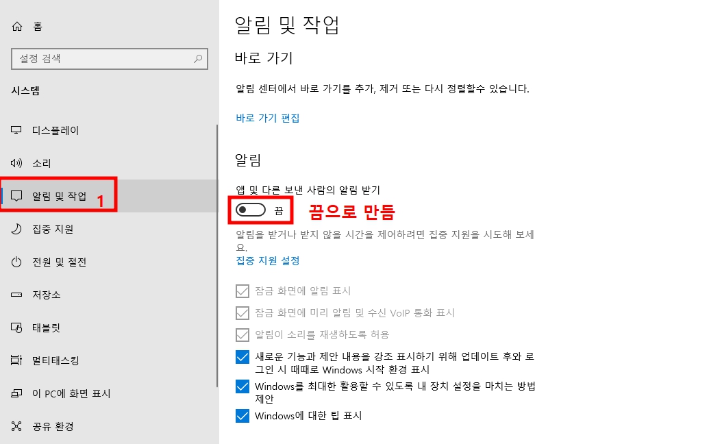 1. 첫번째 방법 - 윈도우 시스템 알림 설정