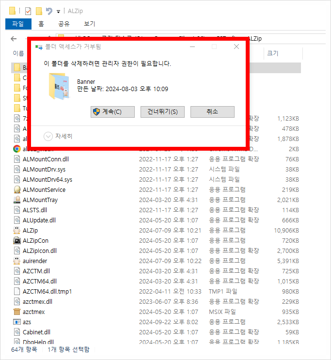 그러면 위와 같이 관리자 권한이 필요하다 하면 계속(C) 클릭