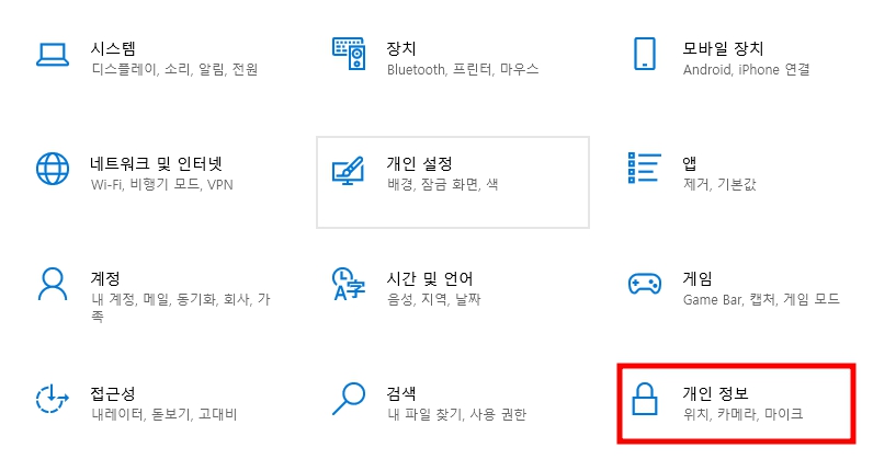 바로 보이는 화면에서 위와 같이 모두 [ 끔 ] 으로 설정