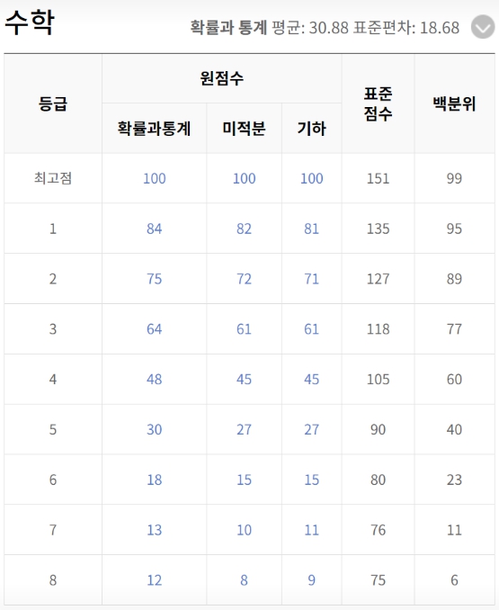 - 영어는 절대 평가 과목으로, 등급컷이 고정되어 있습니다. 90점 이상은 1등급, 80점 이상은 2등급으로 고정됩니다.