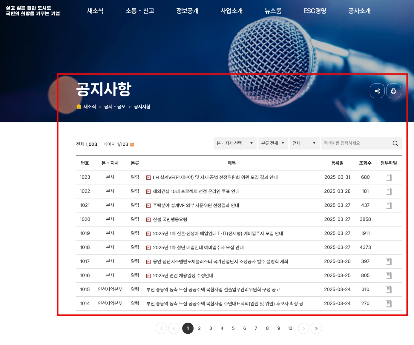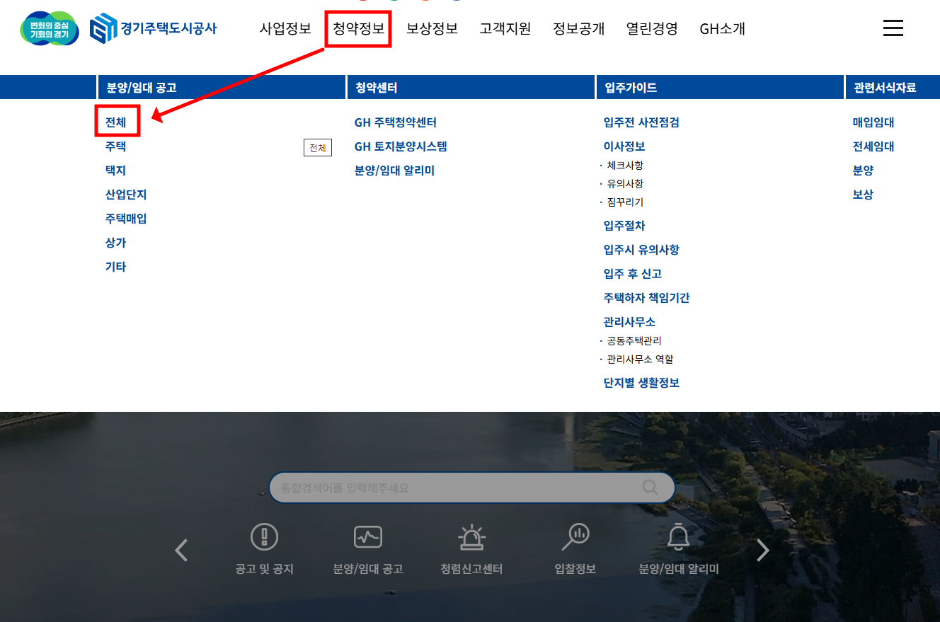 - 열람 경로: 홈페이지 > 청약정보 > 전체